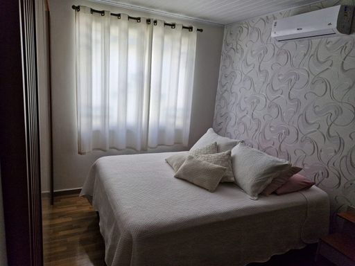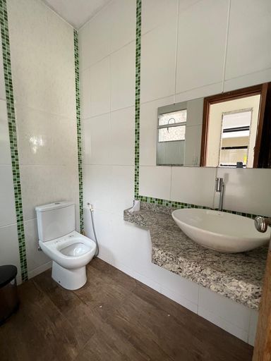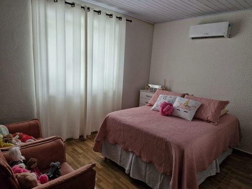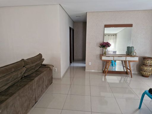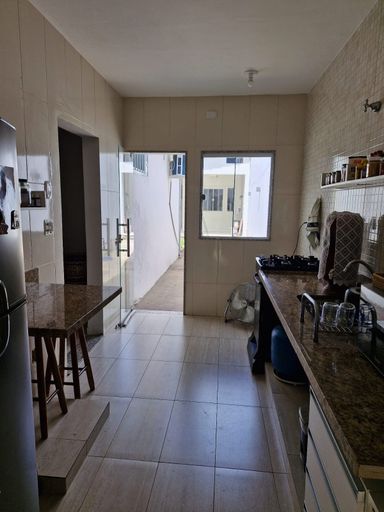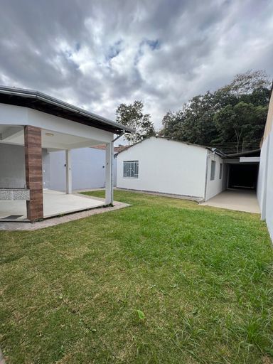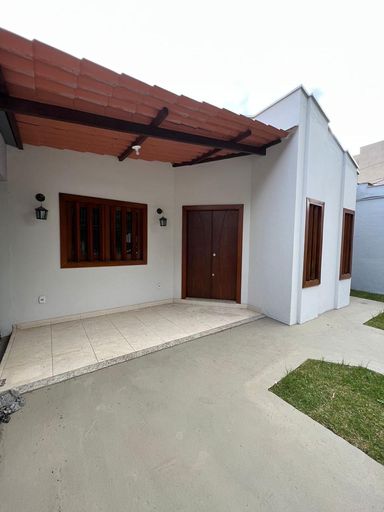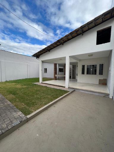 Casa linear com 3 quartos, sala ampla, cozinha e banheiro social, garagem ampla para 3 carros, área externa ampla, com lavanderia e cômodo.